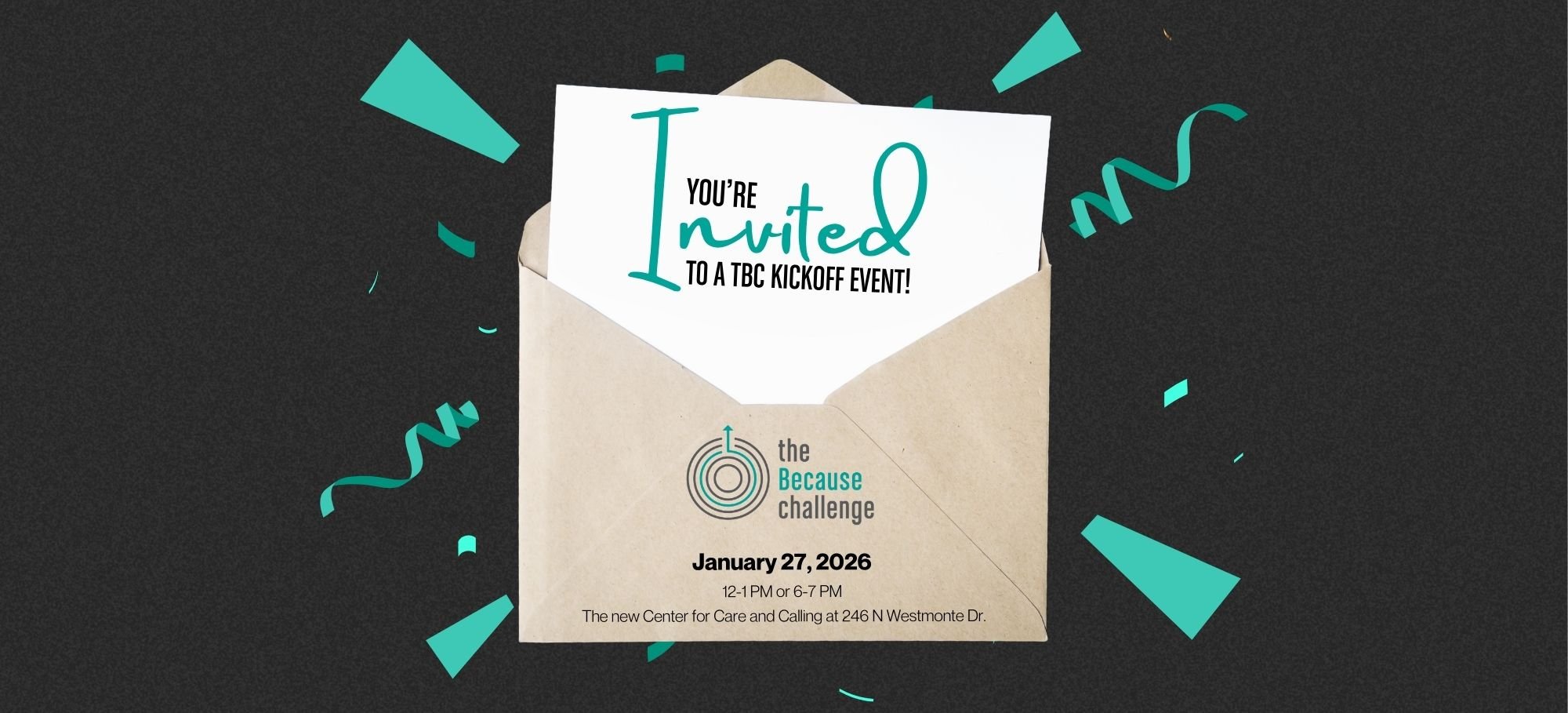 Join us as we kick off The Because Challenge 2026 with a sneak peek at the brand-new Center for Care and Calling! Enjoy a meal together with other Advocates, hear exciting kickoff announcements, and visit the "Content Corner" you won't want to miss to help you inspire and invite your church to TBC!